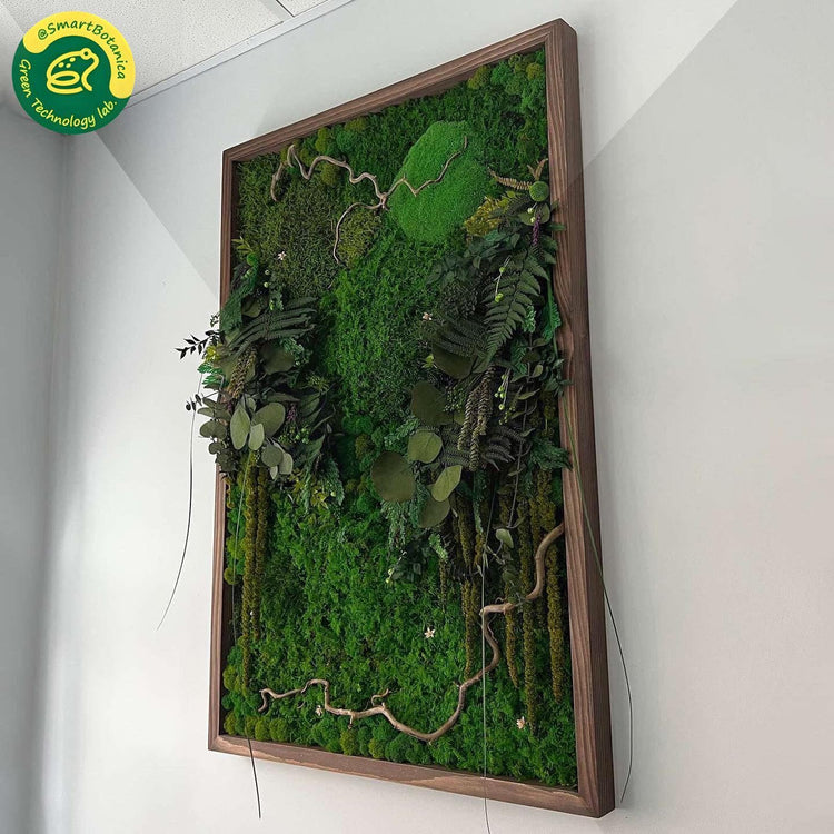 Verwandeln Sie Ihre Wohnräume mit unserem Wandbild „Üppige Moos- und Pflanzenharmonie“! Dieses exquisite Kunstwerk vereint konserviertes Moos, leuchtende Pflanzen und elegant gedrehte Zweige zu einem faszinierenden Naturkunstwerk. Es strahlt Ruhe und Eleganz aus und ist die perfekte Ergänzung für jedes Zuhause, Büro oder Wellnesscenter.