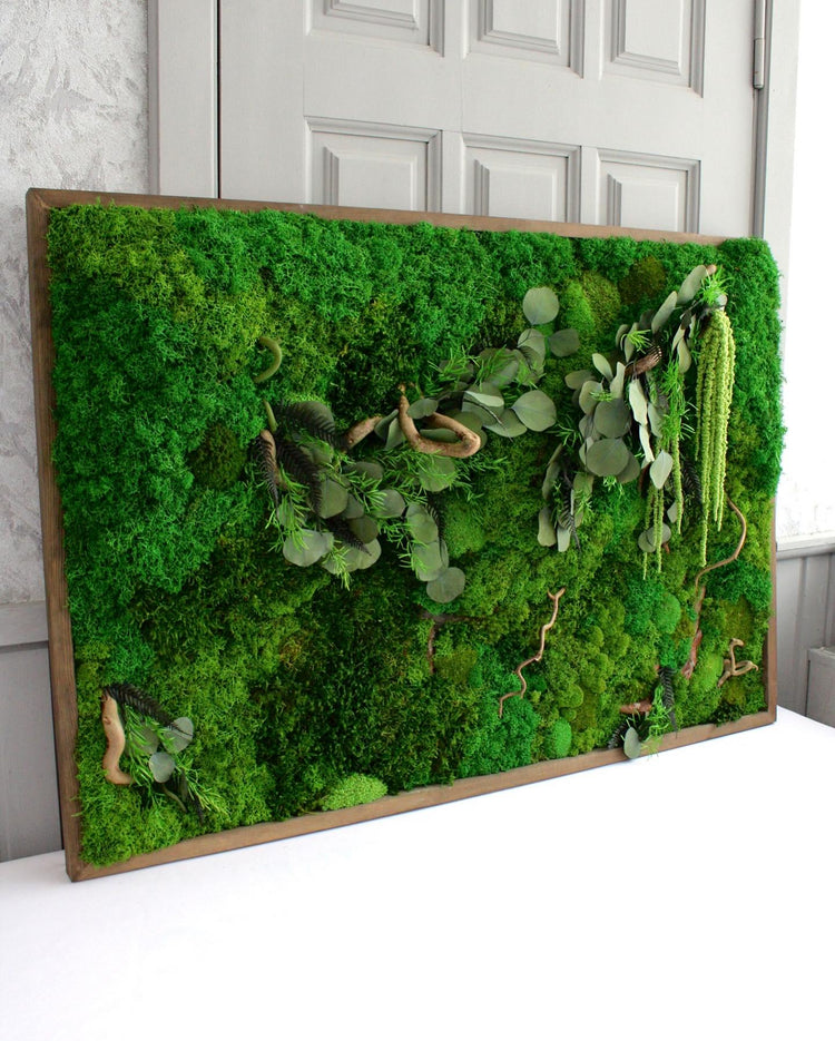 Elegante Wanddekoration aus Moos und Eukalyptus | Verschlungene Zweige, üppiges Grün | Natürlicher Wanddekor-Akzent