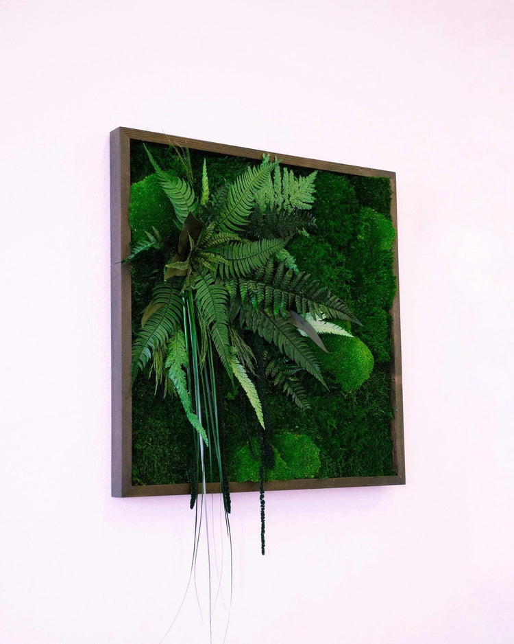Verwandeln Sie Ihren Raum mit diesem quadratischen Mooskunstwerk, bei dem üppiges Grün und organische Texturen aufeinandertreffen und eine ruhige, von der Natur inspirierte Ästhetik schaffen.