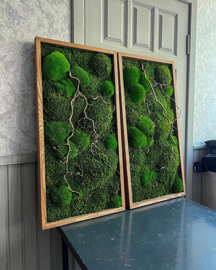 Naturinspirierte, gerahmte Wandbilder aus Moos und Matsudana-Weide | Individuelle, botanisch konservierte Dekoration für Zuhause, Büro oder Spa | Japanisches Zen-Design