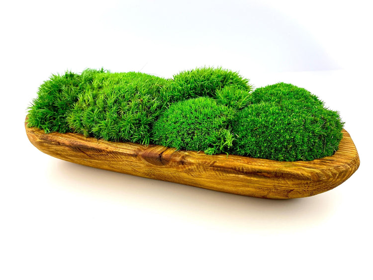 Elegant Preserved Moss Wooden Bowl Centerpiece, Hand-Carved Rustic Dough Bowl, Nature-Inspired Table Decor, CAREFREE | VARIOUS-SIZE