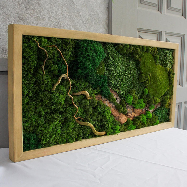 Bring the tranquility of nature into your home with our handcrafted Moss & Wood Frame.