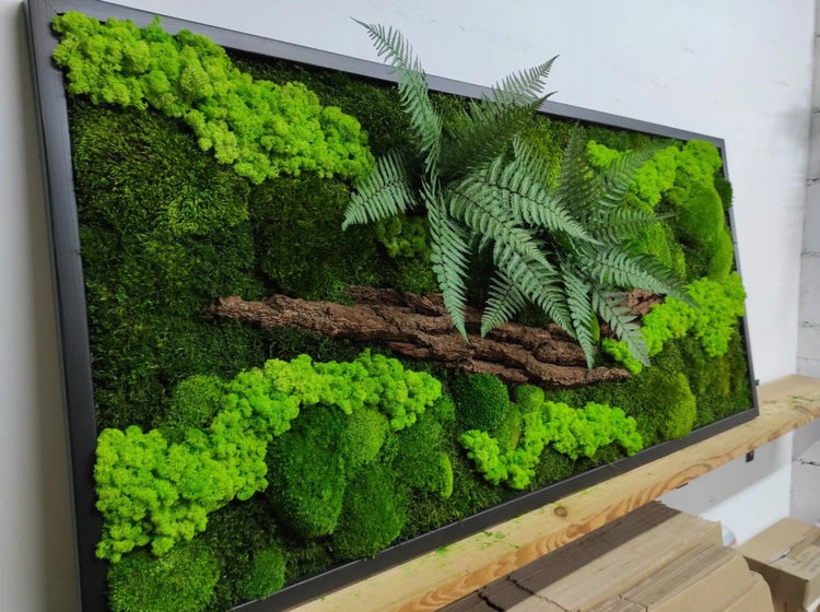 Rustic Elegance Preserved Moss Wall Art, Bark, Ferns | Eco-Friendly, CAREFREE & VARIOUS SIZES